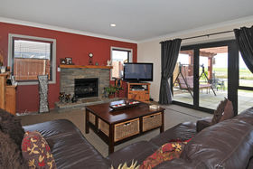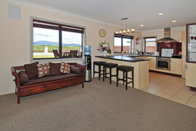 Wow, what a cool place to live. This large two storey home boasts unrivalled views out across the waterway reserve to the Papamoa hills. There are two separate living areas, large entertainer's kitchen and four double bedrooms. The main lounge has an awesome gas fire with a natural stone fire place, also a gas bayonet in the family room. Both the ensuite and the large family bathroom, which has a corner spa bath, have under floor heating. The sound system extends out on the large deck, superb for those family barbeques or quiet evenings just enjoying your wonderful home.</b>