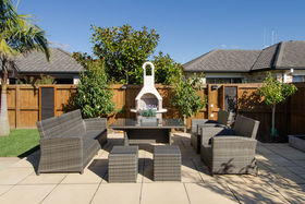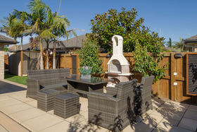 Entertain in style, a floating deck creates a holiday feel, with water feature and pizza oven set to go!!