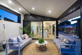 An extensive renovation on this beachside beauty has produced a truely luxurious coastal retreat. Designed by the owners using high finishes and innovative design as their forever home, family circumstances now dictate a move down south. The homes stand out original feature, the gorgeous sarked timber ceilings have been retained, but almost everything else has been replaced; from the flooring to the joinery to the roof and everything in between. A two bedroom studio renovated to the same high standard is joined to the house by expansive decking, delivering the perfect space for teenagers, extended family, or even work from home. Located just one block from the beach on a spacious 831sqm approx. site, this unique property is something special! Call Rachel 5578092 or Jenni 5721955.