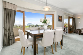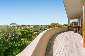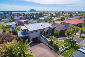 Centrally located just above Cherrywood shops, this elevated property offers panoramic views to the Mount and Tauranga harbour.