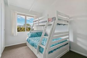 Bedrooms 1 and 2 at this Waihi Beach accommodation each have a queen bed, while bedroom 3 includes a double bunk with a single on top - ideal for couples and families.