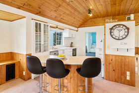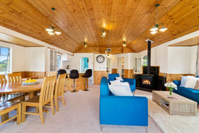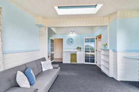 Bedroom 1 at this Acacia Bay accommodation includes beautiful lake views, a fully renovated ensuite bathroom, and is fitted with a queen bed. Bedroom 2 has also has a queen bed, and bedroom 3 is fitted with 2 single beds. The main bathroom has also been recently renovated and is equipped with a bath and shower. A King size single sofa bed is available in the sun room plus a single rollaway bed is on hand in the office.
