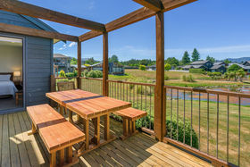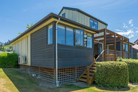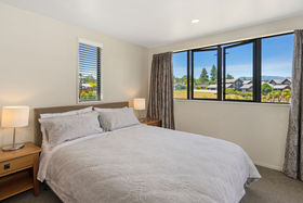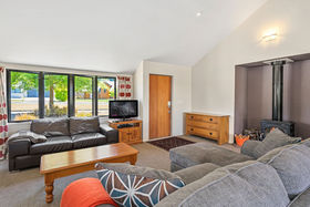 This Hanmer Springs holiday home offers 2 generous bedrooms - including 1 queen bed and 2 king single beds and a roomy mezzanine fitted with a super king bed. The comfortable living area and seamless indoor/outdoor flow allows ample space and privacy. For a summer retreat enjoy al fresco dining with views of the tranquil sunset and lake. If it's a winter escape you are after, spend the day on the Hanmer Spring slopes and come home to a warm and cosy evening by the fire.