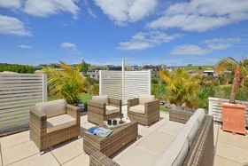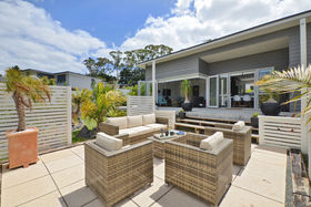 The bright interior flows seamlessly out onto the spacious outdoor living area, where you'll find ample space and outdoor furniture. This is the perfect spot for a BBQ with your group, or to simply kick back on a sunny morning with a coffee and the news.