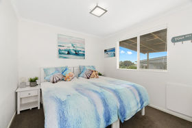 Inside, the open plan living space is tastefully fitted out with modern furnishings and includes a full-sized kitchen with plenty of storage and cooking space. The lounge includes a TV and playstation, perfect for entertaining the kids or watching a movie. Two of the bedrooms are fitted with a queen bed and the third has two single beds, ideal for those travelling with kids. The master bedroom also includes a small work space and ensuite bathroom.