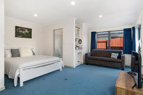 Three car garaging makes room for all the family cars. This sunny home is so restful. Open plan living space with great flow to the garden and entertaining areas.