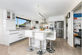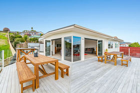 This large 320m2 home comprises of 3 large bedrooms on the first level and an incredible living space all flowing out from the designer kitchen and living, onto a large sunny deck.