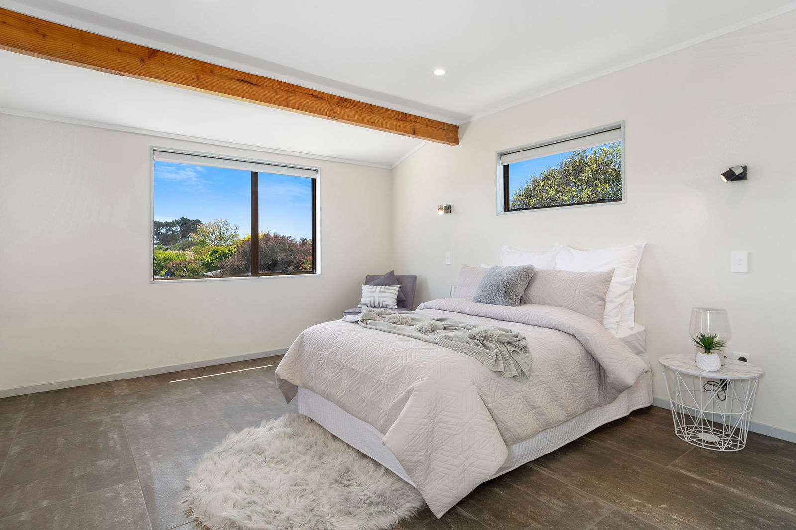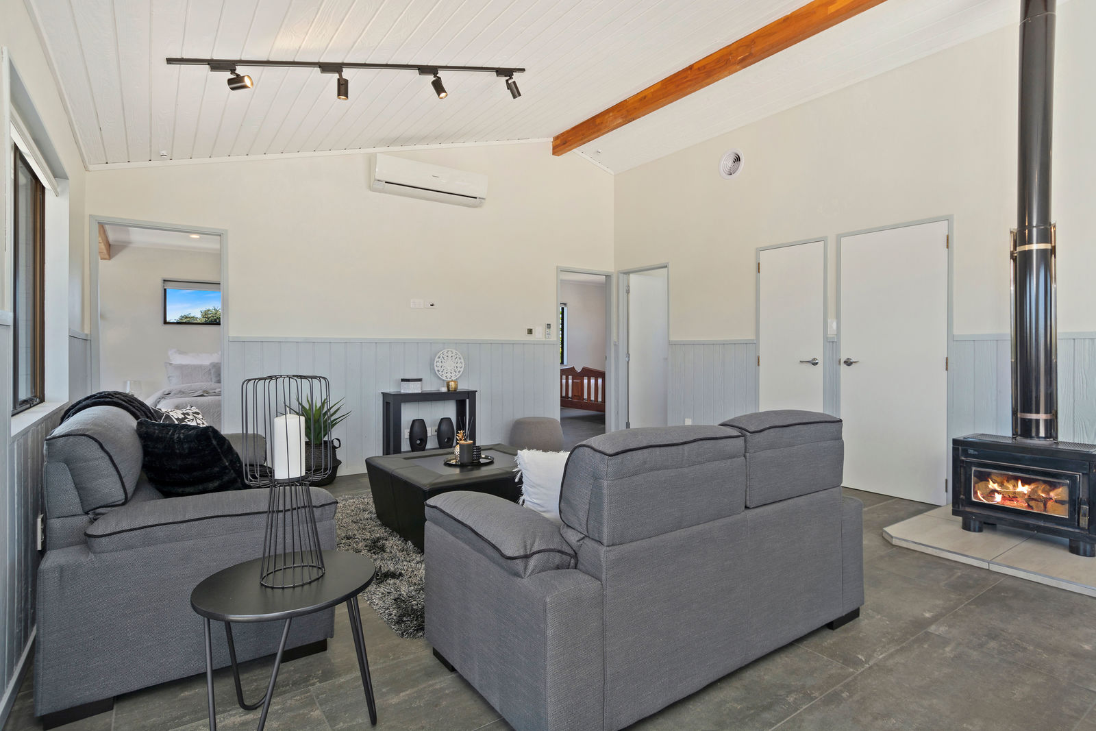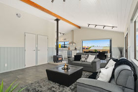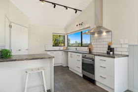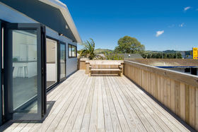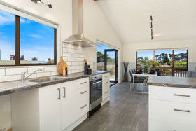 The hard work has been done; new tiled entry, carpets, paintwork, bathrooms, wiring and kitchen. The living has a cosy woodburner with wetback, keeping you warm in winter, and an aircon unit for cool summers. Alternatively, fling open the ranchsliders and enjoy summer days on the massive wraparound deck with views to Papamoa Domain and pine trees, over to the Plaza, the Mount, as well as the Papamoa Hills.