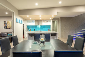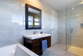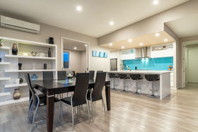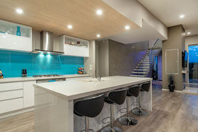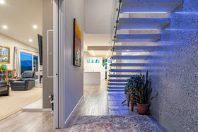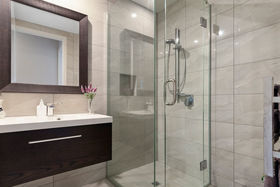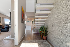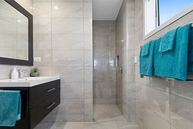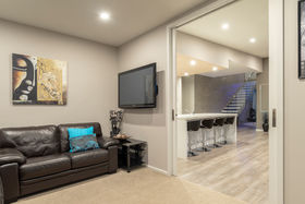 The fourth bedroom on the lower level is spacious with its own kitchenette and separate entrance. A fully tiled bathroom makes this area ideal for guests or teenagers wanting independence. It's also perfect for an office for those who work from home. With clever foresight the designer has allowed provision in the future for a lift.
