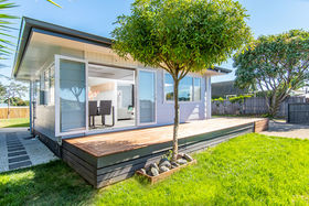The detached guest accommodation consists of a large one bedroom with bathroom and single garage making a fantastic space for a overstay of visitors or room for teenagers to hang. The functional living area all north facing capturing great all day sun with ranch sliders flowing out to a beautiful outdoor area. The cosy lounge area has a fire place perfect for the winter months ahead and the added bonus of the property being double glazed makes it super quiet and warm. The modern and sleek kitchen has been well designed with an abundance of storage space and brand new high quality BOSCH appliances.