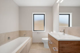Features such as wall hung vanities, elegant heated towel rails and heat pump mixed with finishes like curved walls and stylish modern wallpaper enhance the decor and make it hard not too see value in this home.