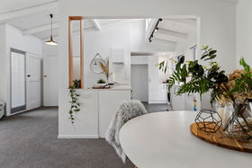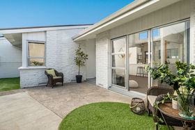 Raked ceilings and stylishly refurbished throughout, clean lines, light and bright, this is gorgeous! A middle unit, private and secure, it's set back off the road enjoying peace and an easy care garden.