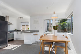 The open plan functional living has a neutral colour pallete with beautiful white shutters making an extremely private abode. The cosy living area sure has a great feel with a heat pump to keep you warm in the cooler months. The modern kitchen with quality appliances faces out to your own private patio area, great space for entertaining family and friends all year round.