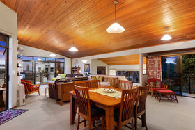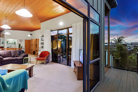 Spread over two levels, the main living area has been designed to take in the ocean views, with sliding doors opening onto the north-west facing deck for those afternoon sundowners. The homes three spacious bedrooms all have their own aspect, with the master situated to take in the ocean view while still remaining very private.