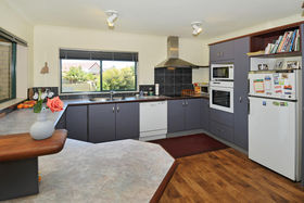 What they love about living here is being cool and shady in the summer, yet warm and sheltered on those sunny winter days. They enjoy the 'easy living' with lots of flow to the outside and room inside - be it in the kitchen, lounge or in the garage. John certainly loved his potting and hobby shed out the back and the ability to back his trailer right up the side of the house to unload plants and potting mix!