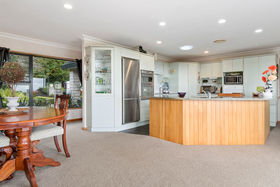 The master suite opens to deck and spa on the east side. A big tiled studio (which was originally a spa room) plus open plan living and a large formal lounge/dining room spans the centre. On the west side is a bedroom wing which attracts lovely afternoon sun. You can shut this area off and it works well for BandB.