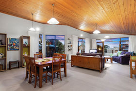 Spread over two levels, the main living area has been designed to take in the ocean views, with sliding doors opening onto the north-west facing deck for those afternoon sundowners. The homes three spacious bedrooms all have their own aspect, with the master situated to take in the ocean view while still remaining very private.