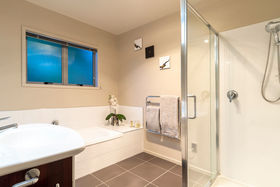 For comfortable temperatures all year round, there are three heat pumps and all bedrooms have double glazing. The water is heated by Infinity gas, so you'll never run out of hot water! The internal access double garage is spacious - room to add a work bench and there's an abundance of off street parking providing plenty of options to park cars, a campervan or your boat.