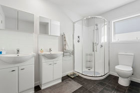 Three bedrooms provide restful retreats, including a spacious master with ensuite and direct access to the deck " ideal for enjoying quiet mornings or evening breezes. The family bathroom features twin vanities and a separate shower, adding to the everyday ease.