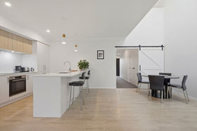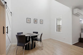 Downstairs features a welcoming entrance hall, a single carpeted internal access garage with integrated laundry, and bespoke high-end finishes - far from your average new build. An attractive barn door leads from the foyer into the dining area, where an impressive, vaulted ceiling and skylight create a real sense of space and light.